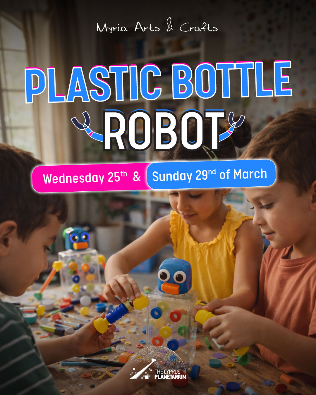 Εργαστήρι Ρομπότ από Πλαστικό Μπουκάλι | Κυριακή 29 Μαρτίου 2026 | 🕒 11:00–12:00 & 15:00–16:00